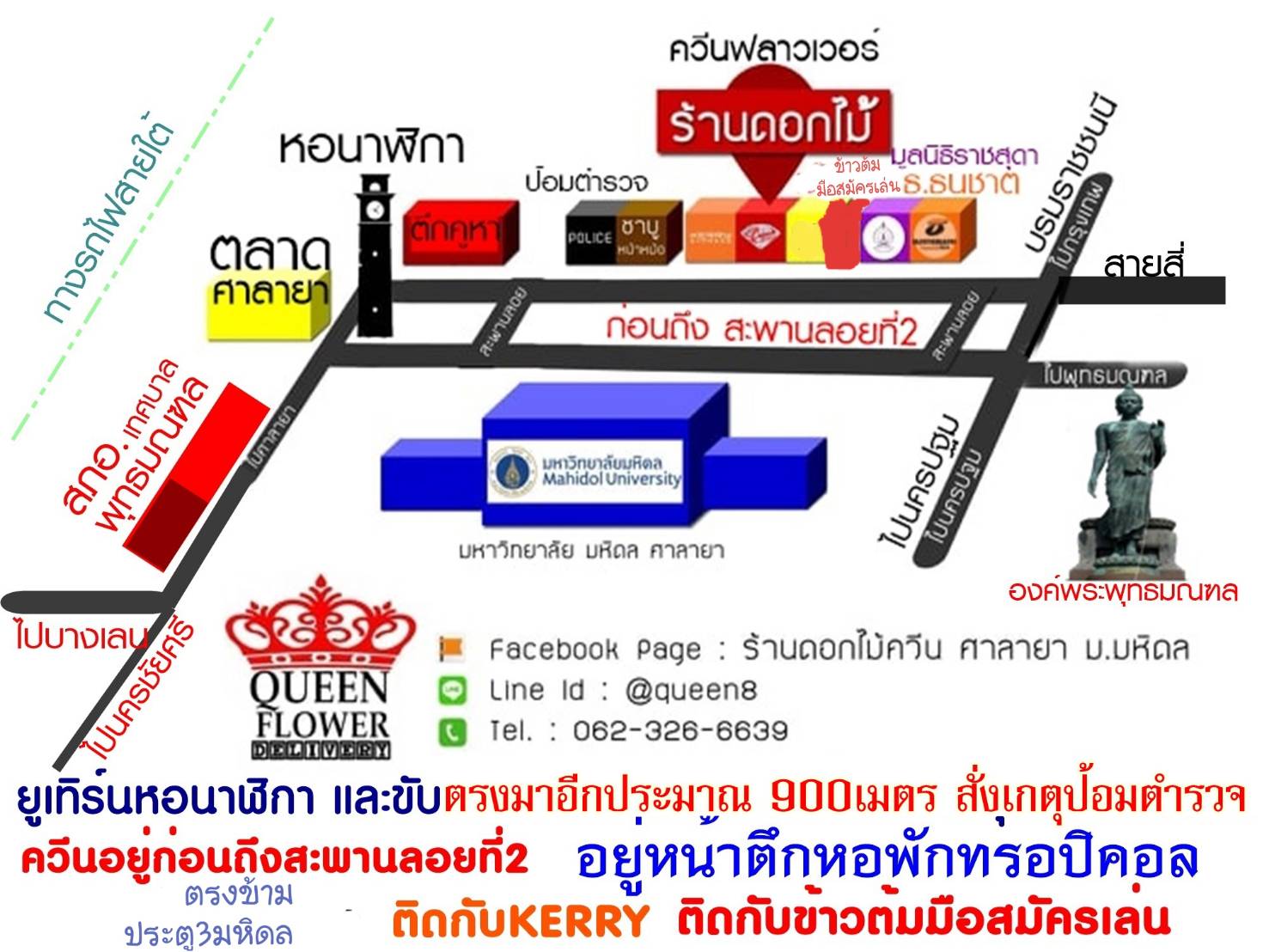 ส่งฟรีOFFICIAL FLOWERTHAILAND QUEENFLOWER ร้านดอกไม้ศาลายา พุทธมณฑล จ.นครปฐม ขายดอกไม้ในจังหวัดนครปฐม เขตศาลายา มีหน้าร้าน หน้า ม.มหิดล รับจัดดอกไม้ ช่อดอกไม้ ช่อรับปริญญา ช่อเจ้าสาว กระเช้าดอกไม้ แจกันดอกไม้ งานแสดงความยินดี งานนอกสถานที่ ขันหมาก งานแต่ง ซุ้มดอกไม้ บริการจัดส่งทั่วกรุงเทพและปริมณฑล ติดต่อเราโทร 0623266639 ไลน์ @queen8 บริการได้ตลอด 24 ชม. ไม้เว้นวันหยุด